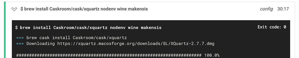 brew install Caskroom/cask/xquartz nodenv wine makensis