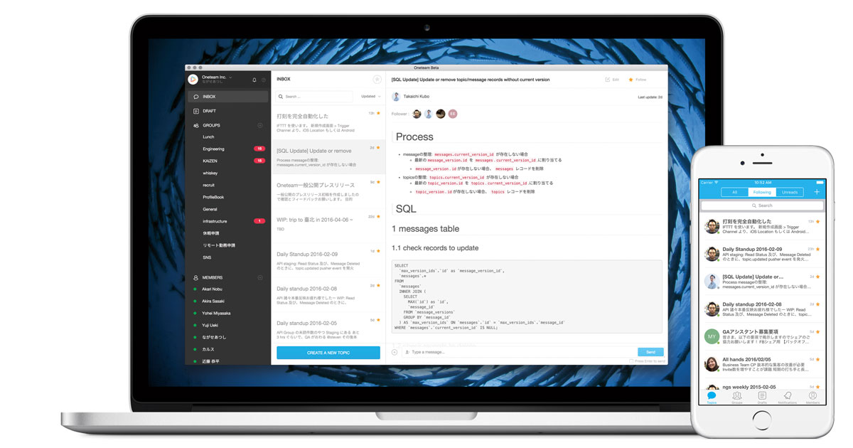 現在、弊社のプロダクトは Bot 連携に対応していないため、Slack を使っていますが、現在 Bot 用のエンドポイントとライブラリを開発しているので、近々、自社製品で完結するようになります。